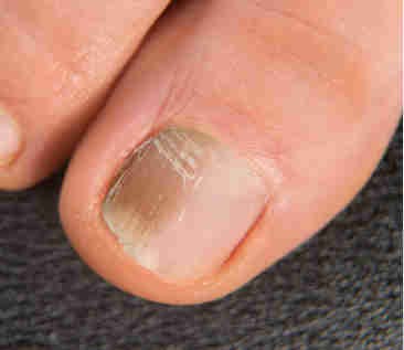 Before use: Nails appear discolored, brittle, and irritated by fungal infection.